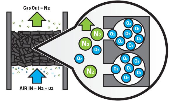 *The molecular dynamic diameter of nitrogen (N₂) is slightly larger (about 3.64 Å), and its diffusion rate is slower, so most of it cannot be adsorbed and is discharged as product gas from the top of the adsorption tower.